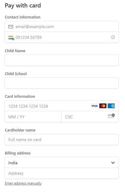 You have to fill your basic Credit / Debit card details and upload your payment receipt.